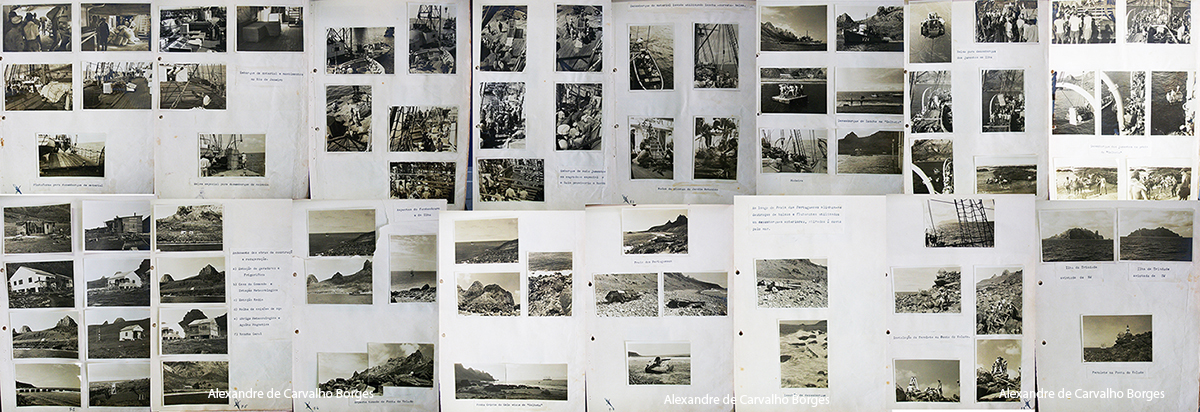 Eu também resgatei 75 fotografias das missões dos militares na ocupação da Ilha da Trindade, ocorrida no final da década de 50. As cenas desses registros mostram militares trabalhando na ocupação da ilha em instalações recém-construídas e no convés do navio-escola Almirante Saldanha.